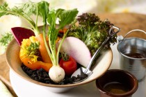 「野菜がおいしいレストラン」では、季節の野菜をふんだんに使ったこだわりのメニューをご用意。夕食には、気軽に楽しめるシェアコースや、フレンチをベースに和のテイストを加えた、お酒に合うアラカルト料理も取り揃えています。